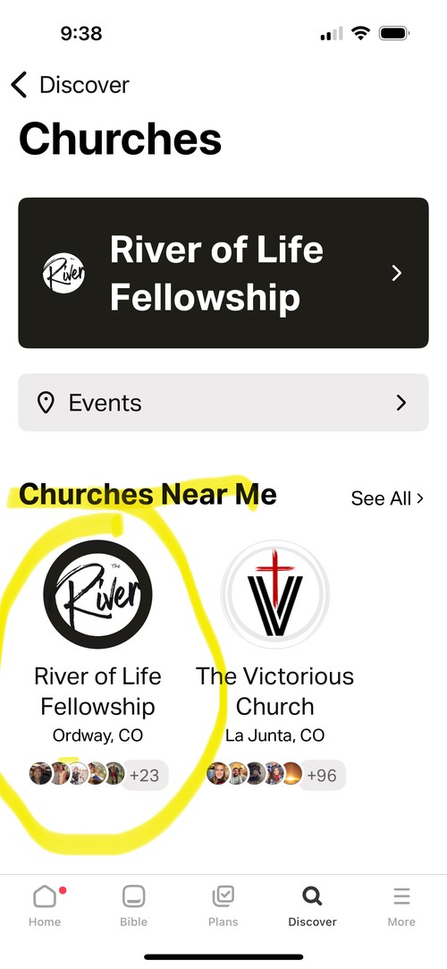 Next Select the River in Churches near me. You might have to enable your location services on your phone. You can also just search for the River of Life Fellowship in Ordway, CO.